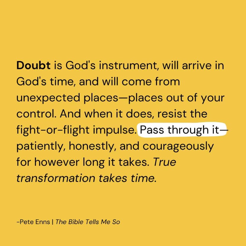 This leads me to an interesting take from the theologian Pete Enns on doubt. We all know the bible on its face is pretty rough on the concept of doubt. We see this strongly in many places.