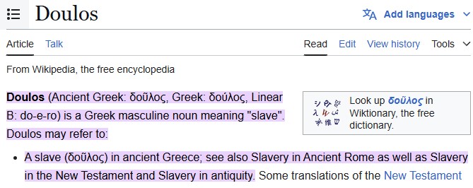 FYI if you have been under the impression that Doulos should be “servant” or “bondservant” or anything other than just “slave,” I would recommend you read this article.