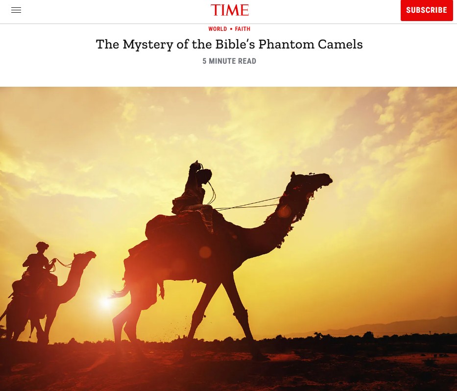 However, after more time went by, and more discoveries and links with already existing evidence were made, the error was realized. Today many scholars and archaeologists acknowledge camels were indeed in domesticated use plenty early enough for this story to be valid (at least in that aspect).